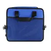 Universal Car Storage Organizer Trunkin rear of SUV with picnic items inside also smaller picture at bottom side view of the three different colors blue red and green Universal Car Storage Organizer Trunk four different views of blue organizer showing inside pockets and one view showing organizer folded